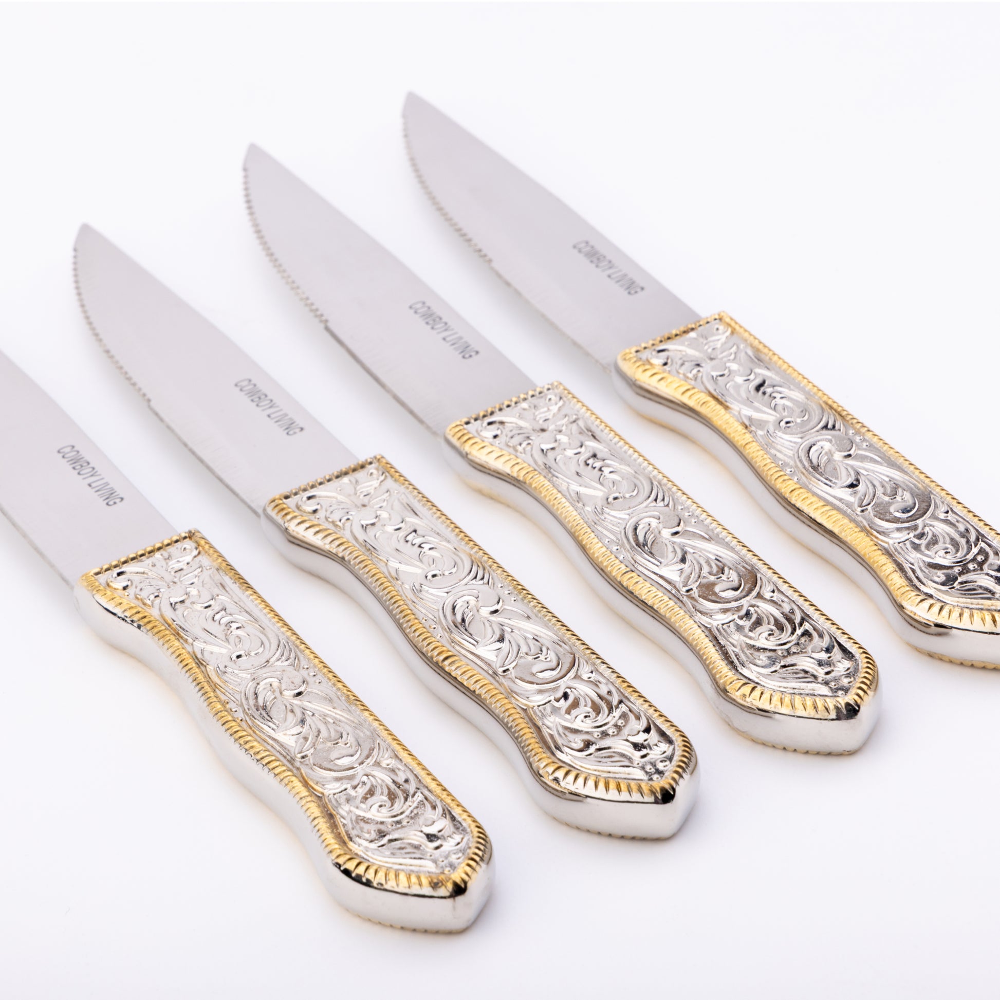 Cowboy Living Steakmesser mit Westernschnalle aus rostfreiem Silberbesteck (4er-Set)