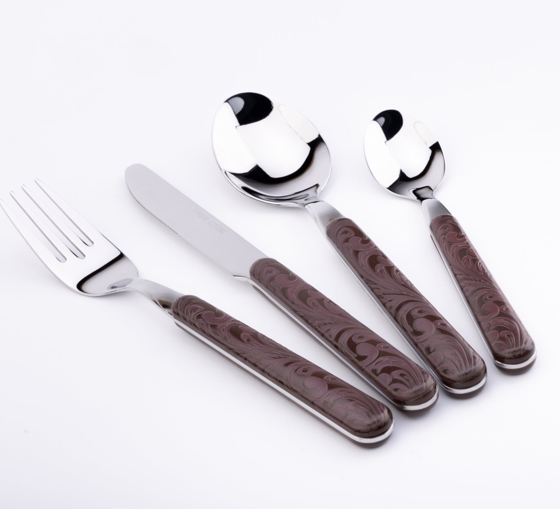 Bring the spirit of the range to your table—order your Cowboy Living "Tooled Leather" flatware set today!