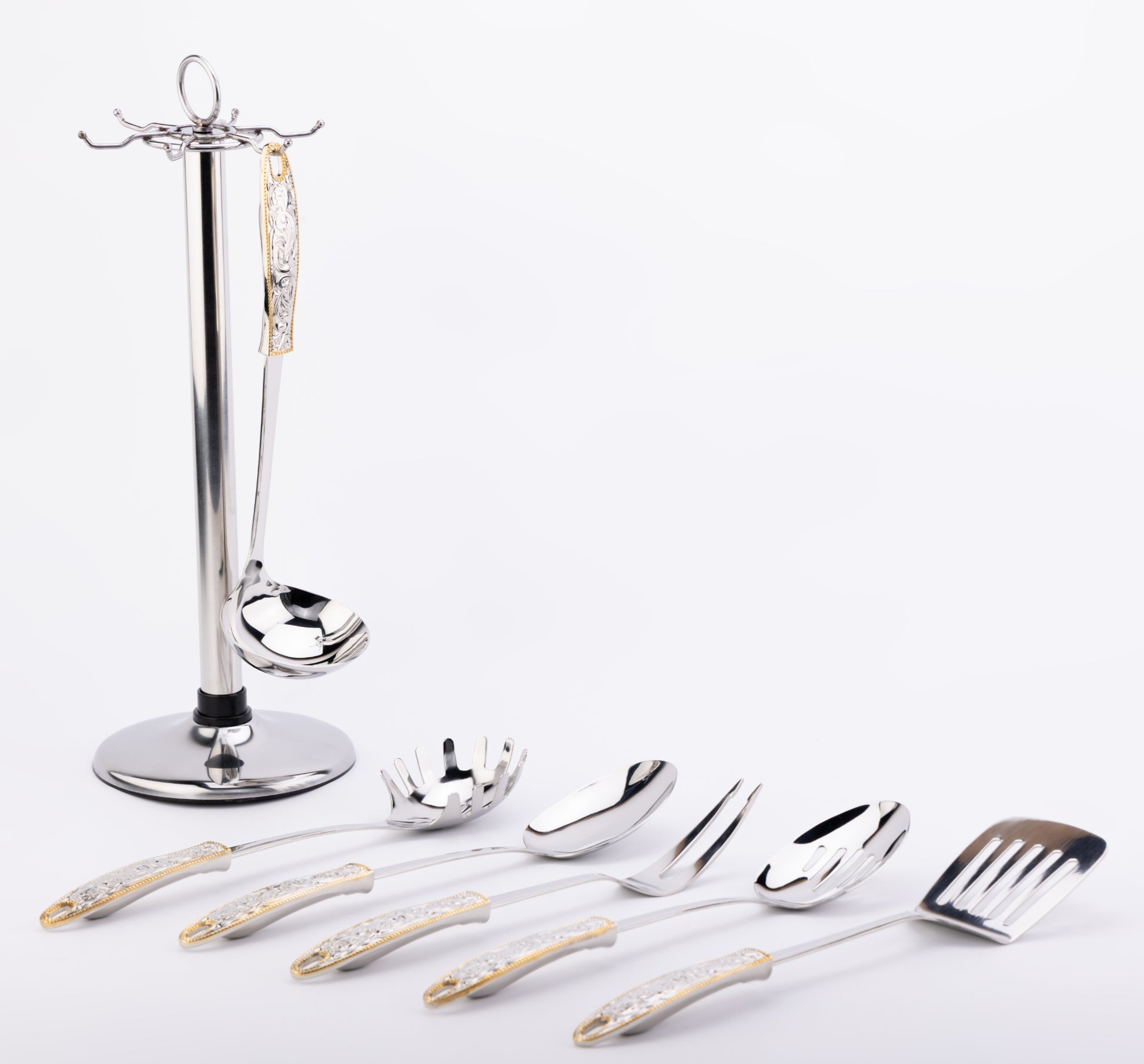 Western Buckle Sechsteiliges Servierbesteck-Set mit Gestell