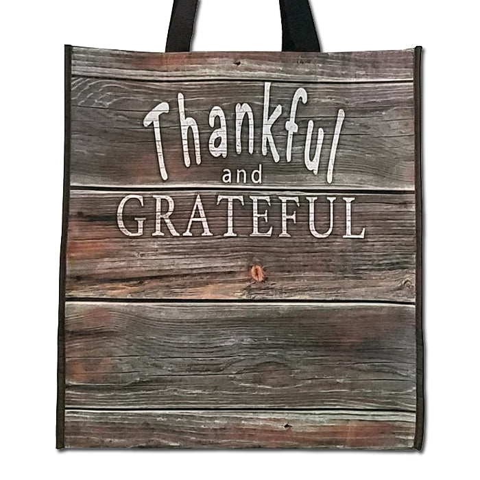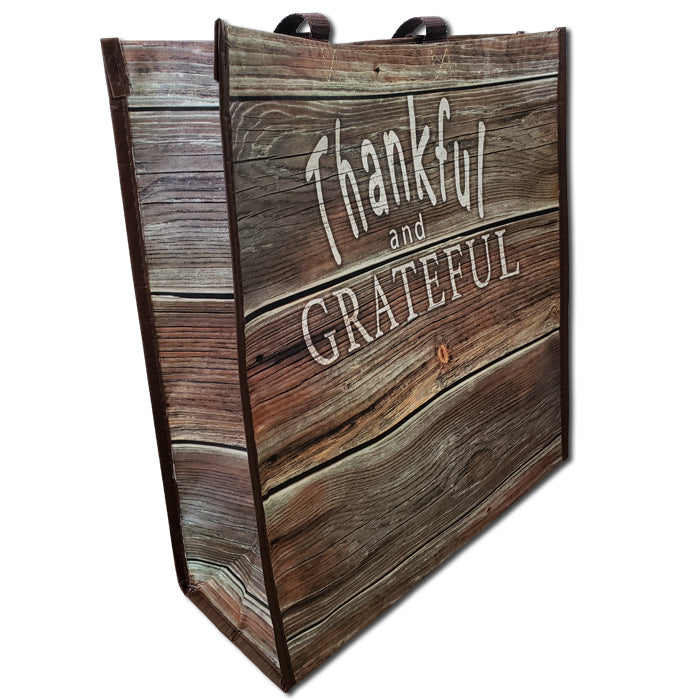 Esta bolsa de compras te recuerda que debes estar "agradecido" por todas las cosas buenas que tienes en la vida. Esta duradera bolsa no tejida mide 15" x 14" x 6".