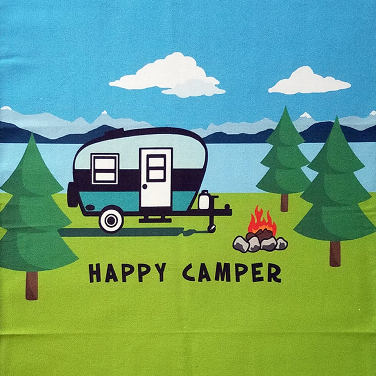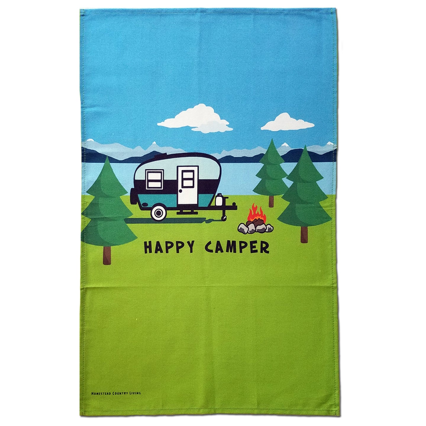 You'll be a happy camper with this 100% cotton kitchen dish towel featuring mid-century modern style artwork. Size 15.75" x 23.5"